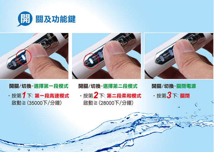 每包內容:主機(含刷頭不含電池)x1+配件(刷頭x1+牙縫刷x1)+說明書(保證卡) x1