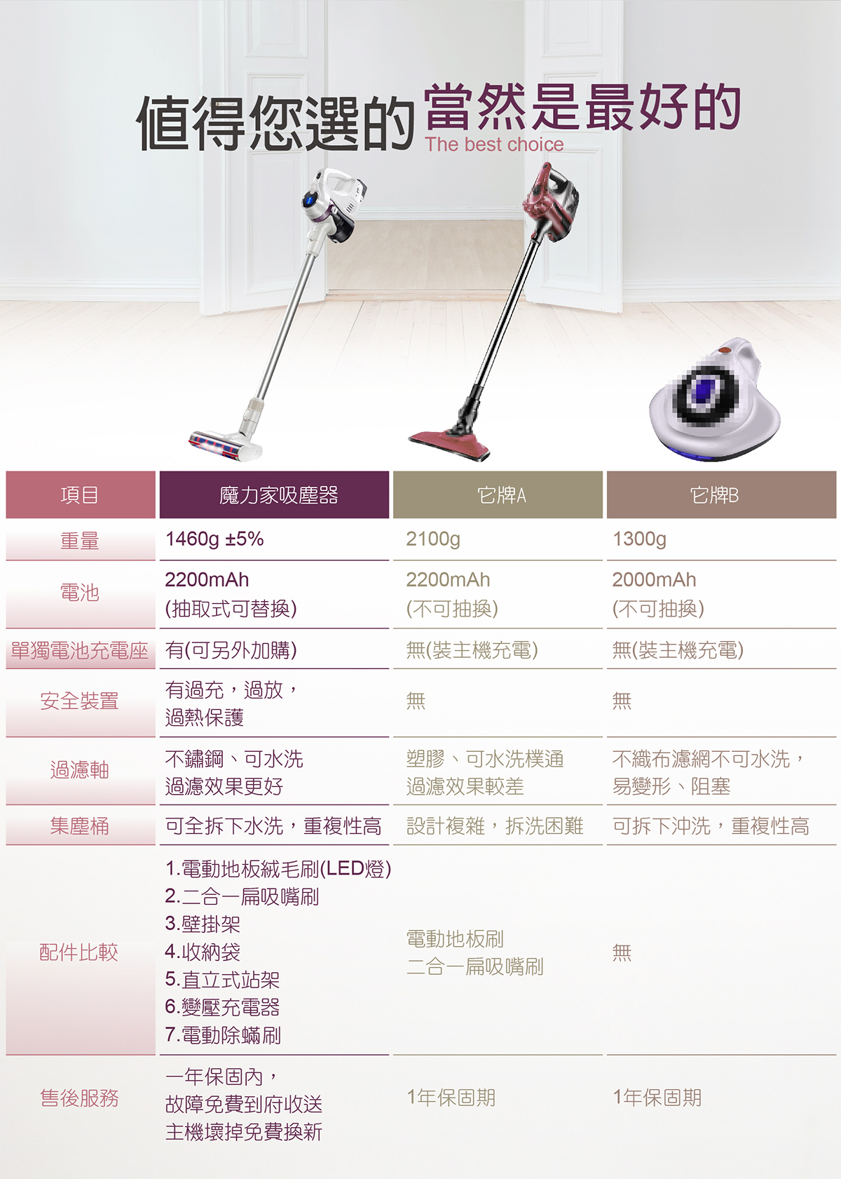 產品名稱:【魔力家】髒吸吸 充電式無線吸塵器2.0 -大全配14件組