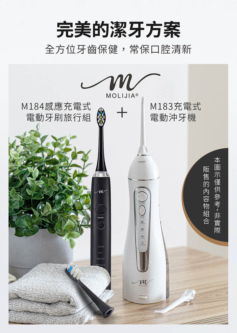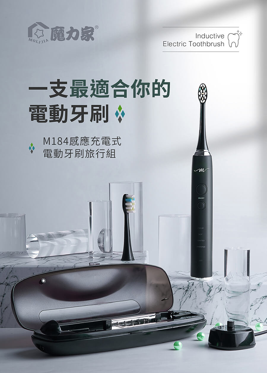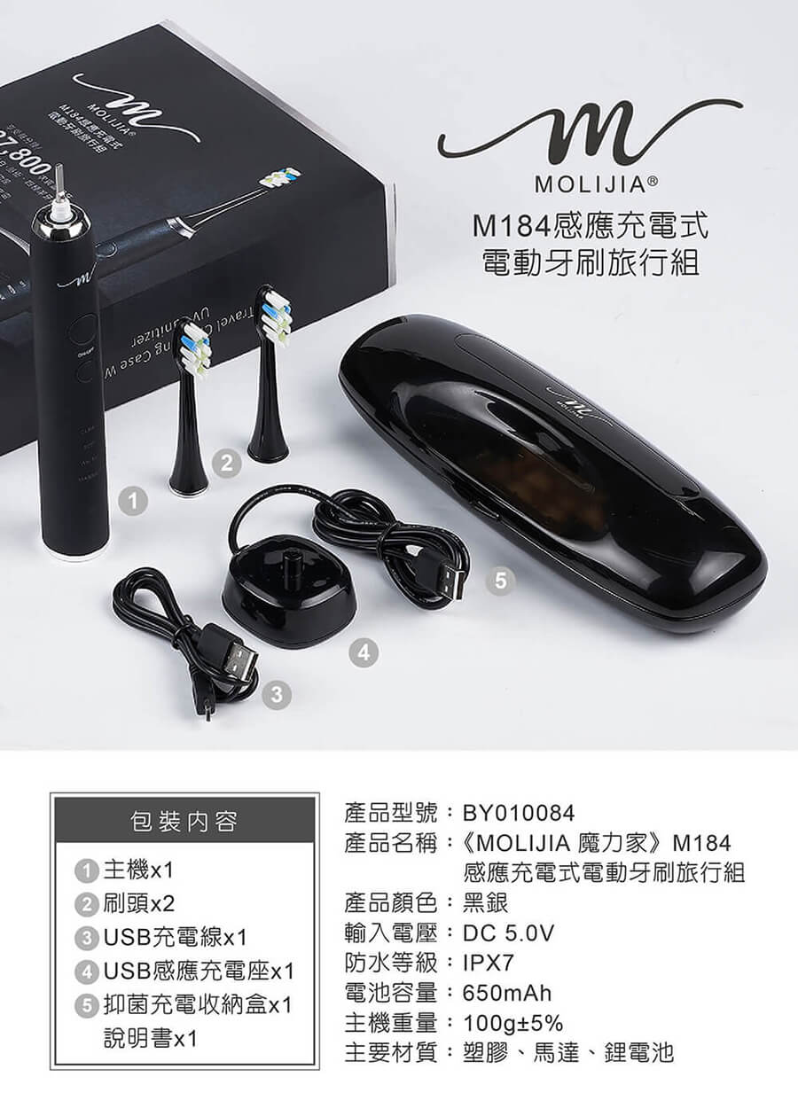 產品名稱:【MOLIJIA 魔力家】M184 感應充電式 電動牙刷旅行組