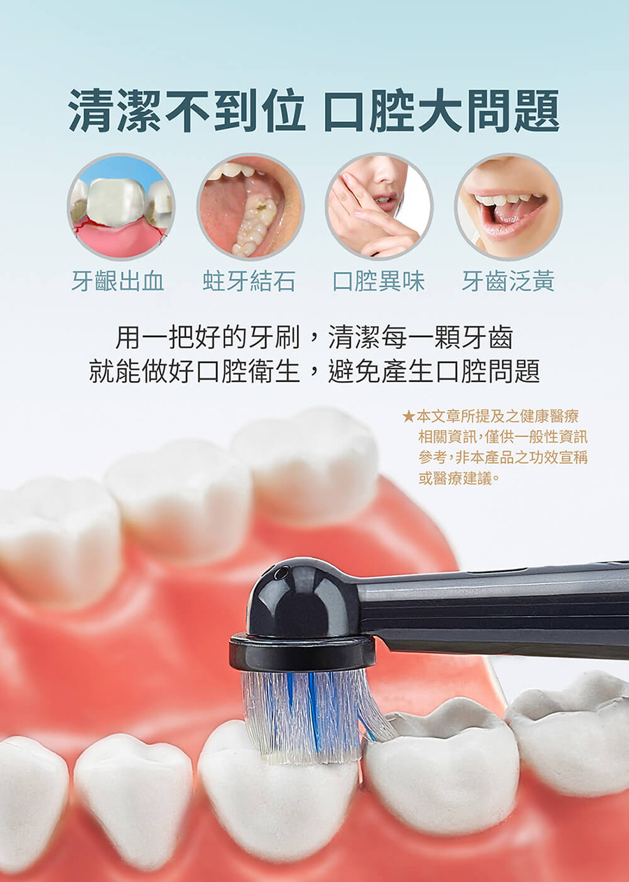 包裝內容物:主機x1+刷頭x2+ USB充電座x1+說明書保卡x1
