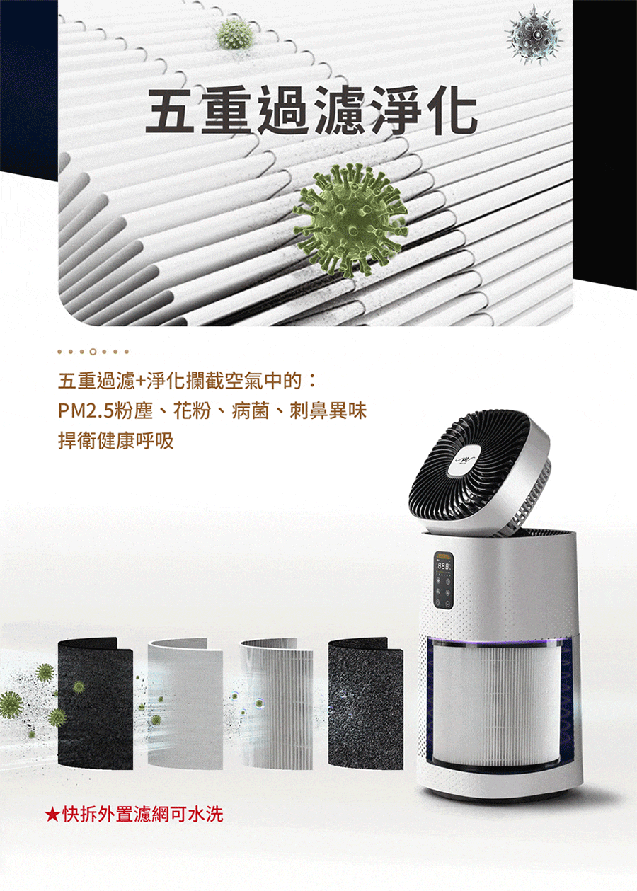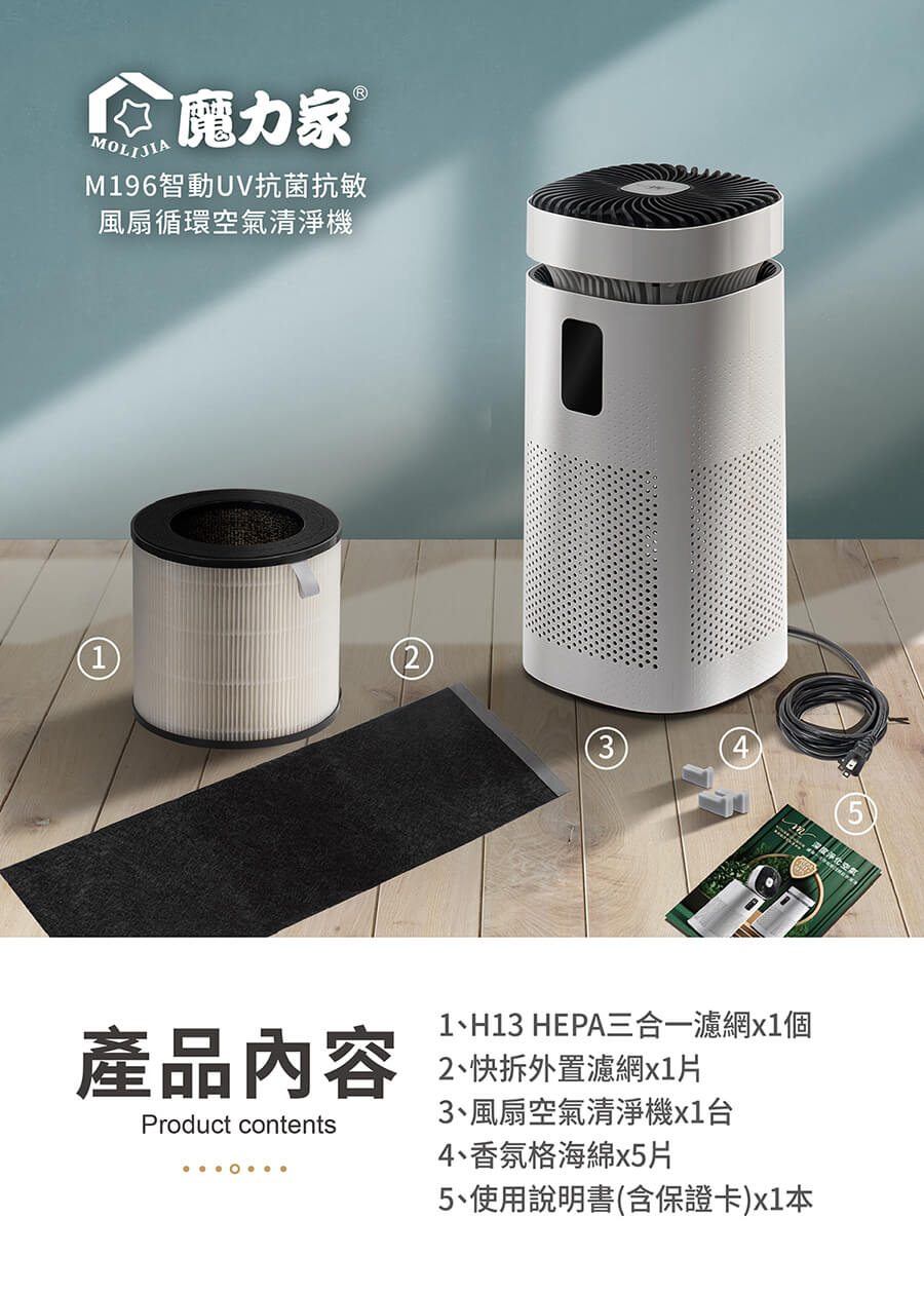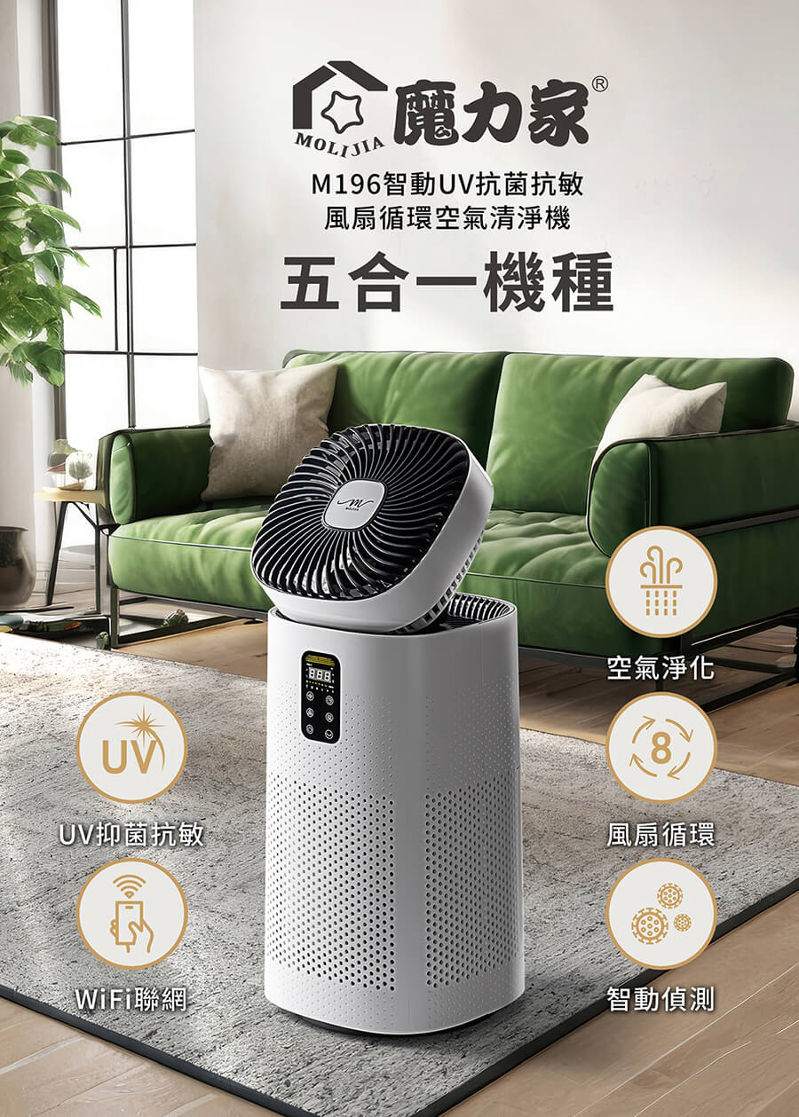 產品名稱:【MOLIJIA 魔力家】M196 智動UV抗菌抗敏風扇循環空氣清淨機/淨化機
