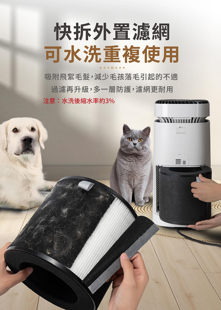 濾網組成:圓筒型三層複合過濾 ( 空調PET濾網 + HEPA 濾網(熔噴布)+ 活性碳過濾棉)