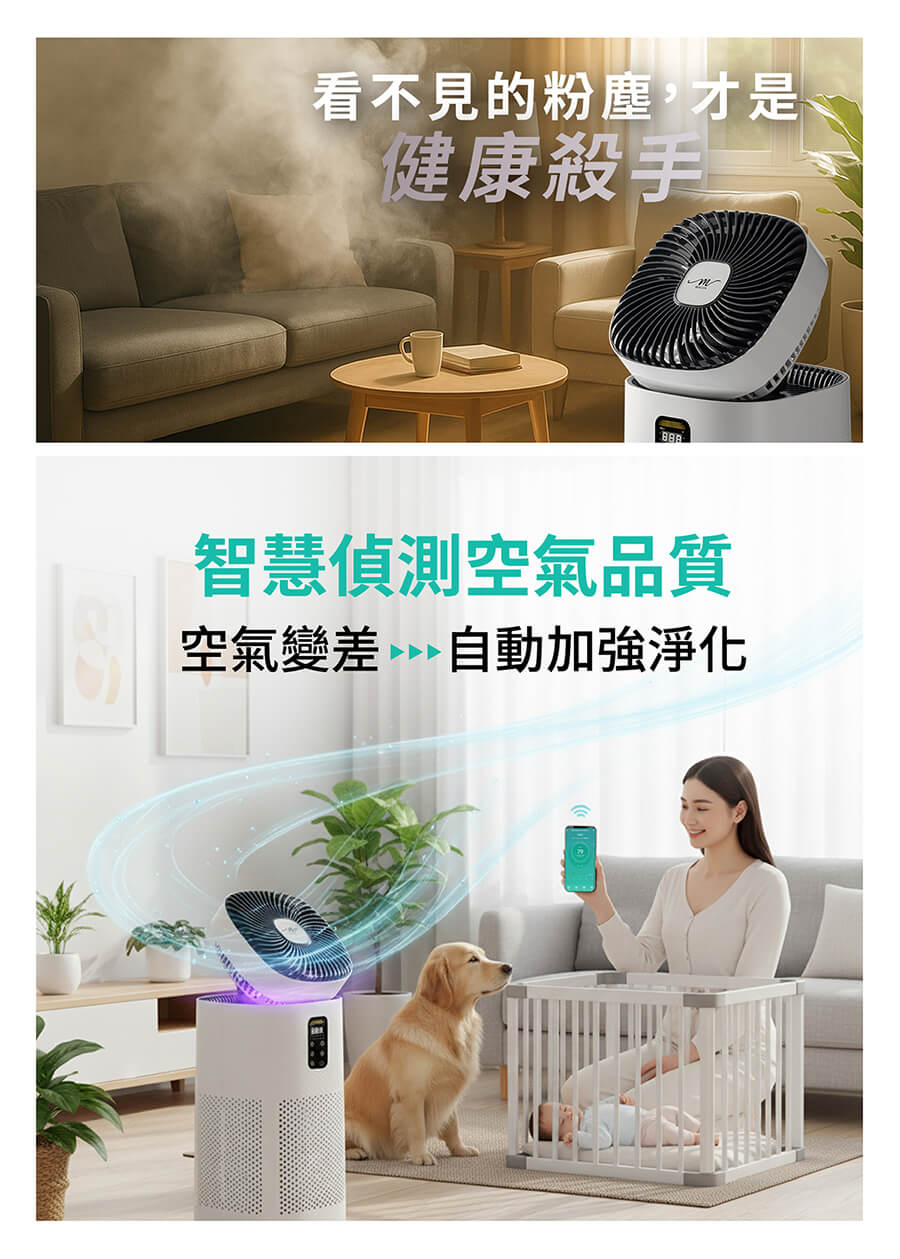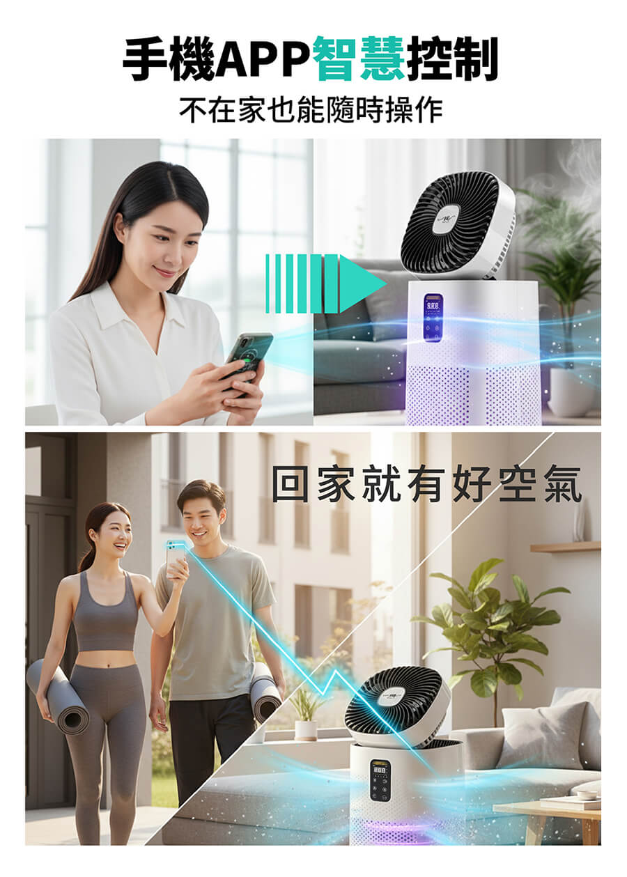 其他功能:童鎖、UV燈開關、精油薰香格、Wifi聯網,手機APP操作、粉塵自動感測