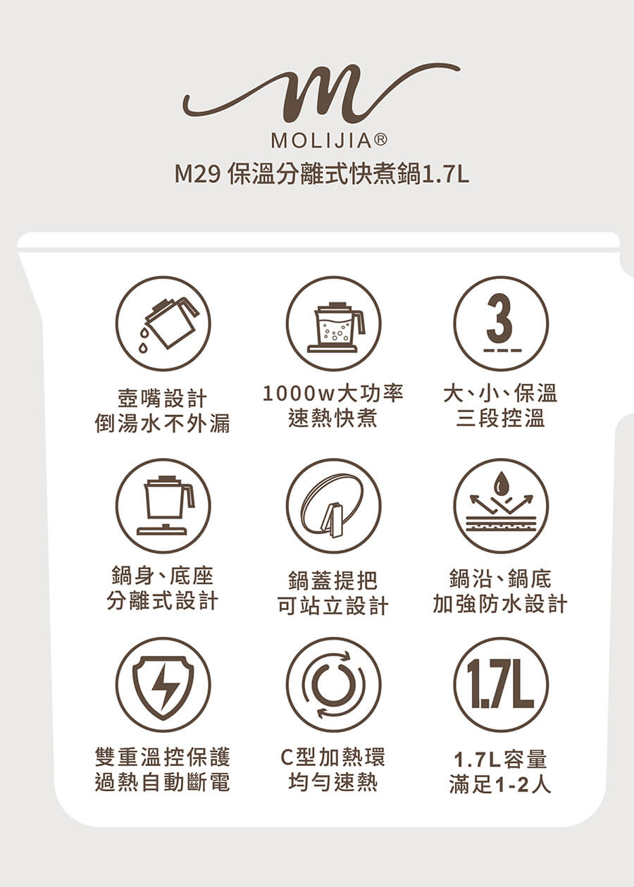 產品名稱:【MOLIJIA 魔力家】M29 保溫分離式快煮鍋1.7L