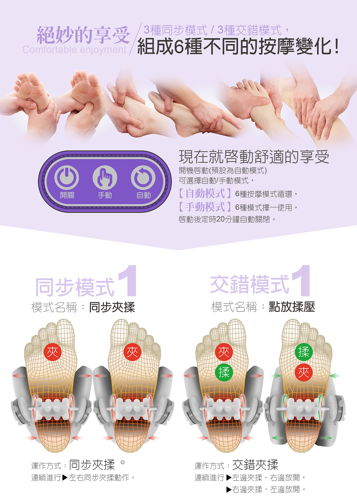 ✩ 新型結構專利,六種模式變化,享受層次漸序舒揉感