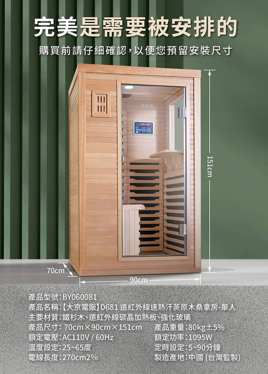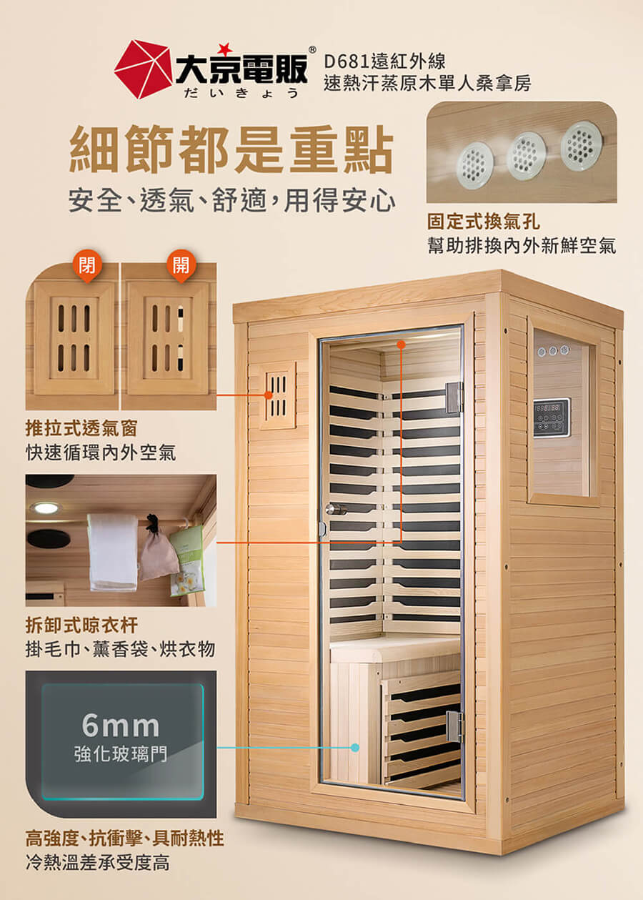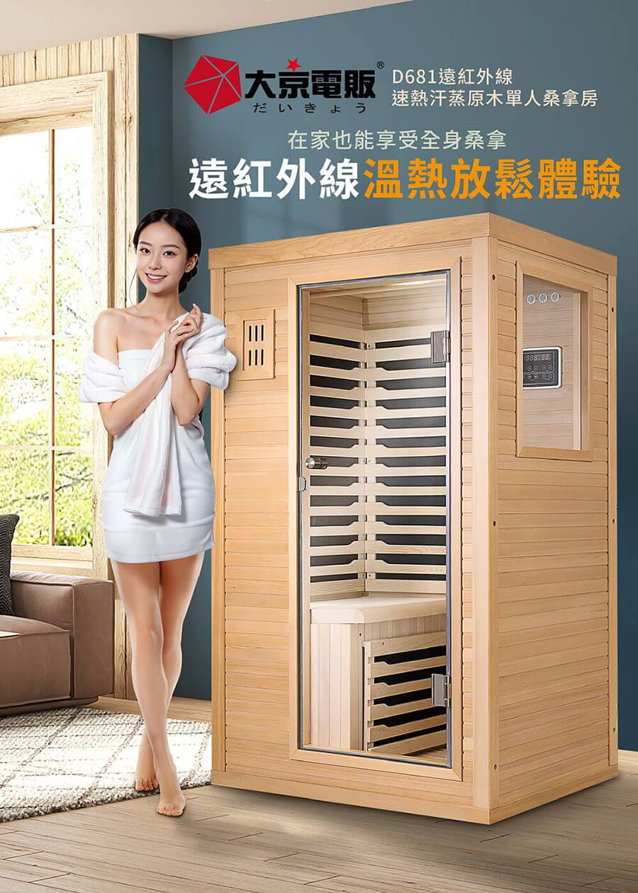 產品名稱:【大京電販】D681 遠紅外線速熱汗蒸原木桑拿房-單人