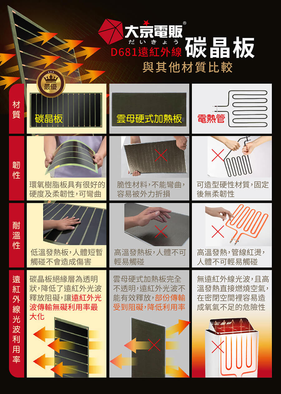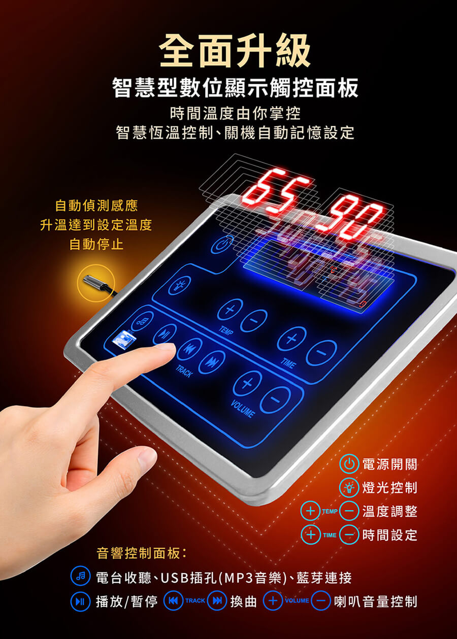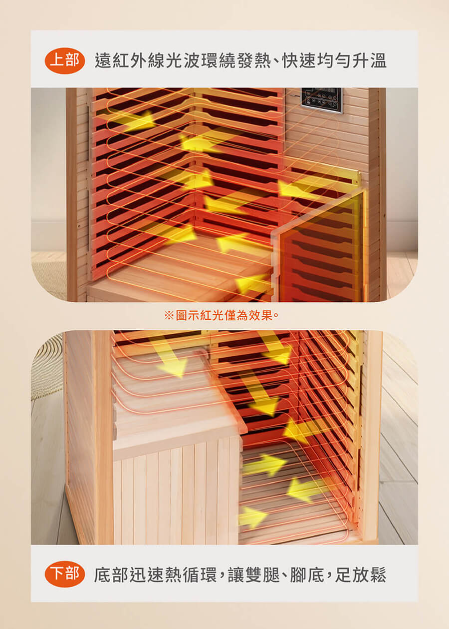 產品材質:加拿大鐵杉木、遠紅外線碳晶加熱板