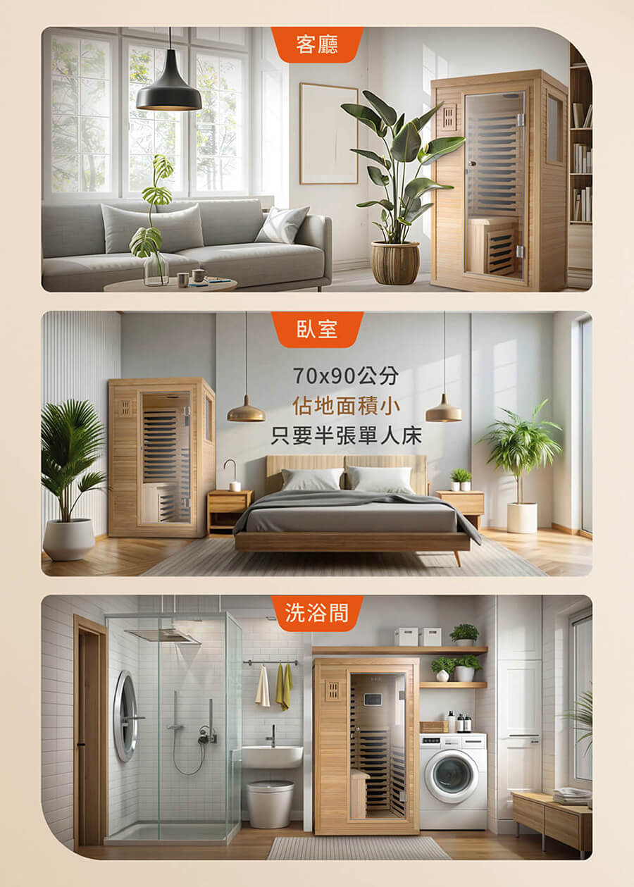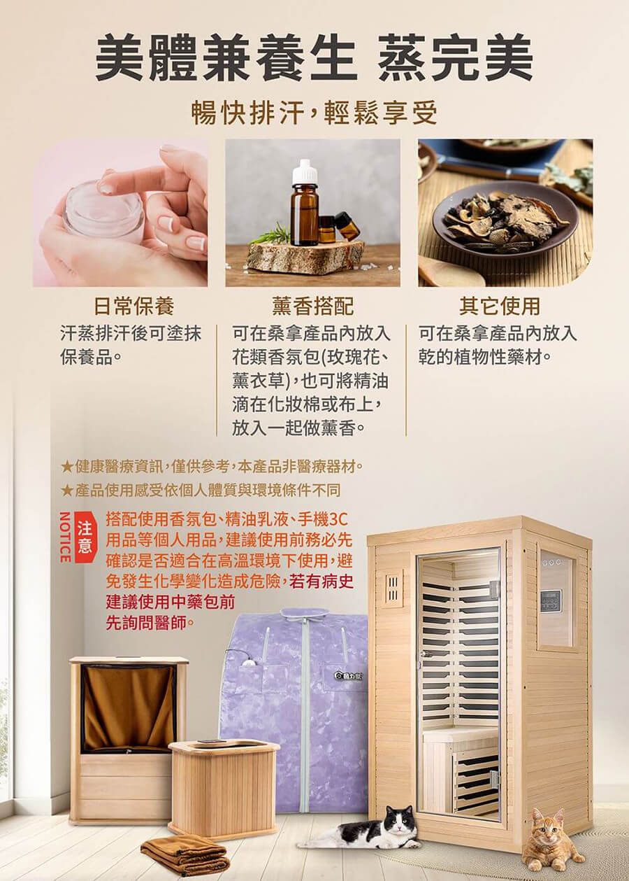乾式免加水汗蒸個人設備,獨立養生放鬆空間